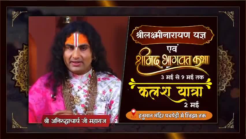 परम पूज्य श्री Aniruddhachary Ji Maharaj जी के मुखारविंद से होने वाली श्रीमद् भागवत कथा में आप सभी भक्त सादर आमंत्रित है भव्य कलश यात्रा दिनांक 2 मई शाम 4 बजे हनुमान जी मंदिर पचपेड़ी से यज्ञ स्थान रिवंझा तक