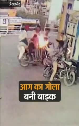 पेट्रोल पंप पर बाइक में लगी आग VIDEO : दादा - पोता बाइक पर बैठे थे , गिरने पर बची जान , पंप कर्मचारी का हाथ झुलसा