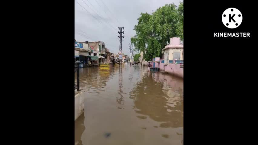 तारानगर: तारानगर में 17 एमएम बारिश से मौसम बना सुहावना, सड़क पर भरा बरसाती पानी।