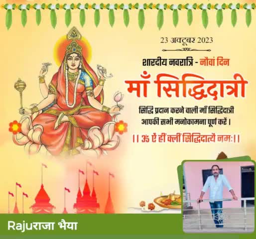 या देवी सर्वभूतेषु माँ सिद्धिदात्री रूपेण संस्थिता । नमस्तस्यै नमस्तस्यै नमस्तस्यै नमो नमः ॥ माँ भगवती के नवें स्वरूप माँ सिद्धिदात्री को चरणों में नमन । माँ दुर्गा की सदैव कृपा आप पर बनी रहे आपको सुख और समृद्धि की प्राप्ति हो 🙏🏻🙏🏻