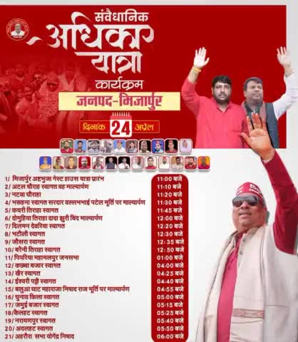 कल ज़िला मिर्ज़ापुर में पहुँचेगी संवैधानिक अधिकार रैली !!! अष्टभुजा गेस्ट हाउस विंध्याचल से आरम्भ होगी सुबह 11 बजे