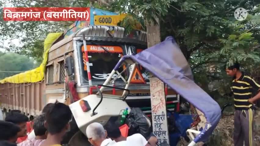बिक्रमगंज: बासगितिया मोड़ पर हुई सीमेंट से भरी ट्र्क और ट्रेक्टर के बीच जोरदार टक्कर ।