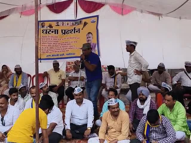 आम आदमी पार्टी का महंगाई को लेकर विशेष धरना प्रदर्शन। महाराज बाड़े, ग्वालियर पर।