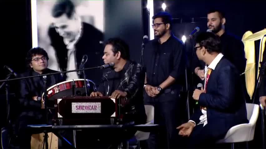 बॉलीवुड मूवी "अतरंगी रे" के ऑडियो लौंच में स्वागत राठौड़, ए आर रहमान के साथ प्रस्तुति देते हुए।