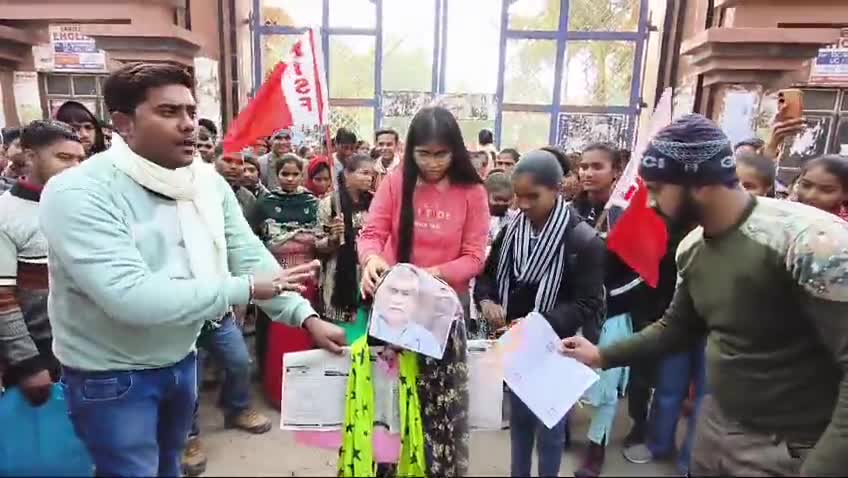 नीतीश कुमार के महिला विरोधी बयान के खिलाफ #AISF की छात्राओं ने उनके फोटो पर ओढ़नी पहनाकर विरोध जताया।