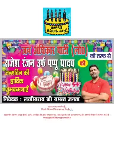 "आप जियो हजारों साल,साल के दिन हो पचास हजार" जन अधिकार पार्टी (लो)के राष्ट्रीय अध्यक्ष सह पूर्व सांसद आदरणीय राजेश रंजन उर्फ पप्पू यादव जी को 54 वें जन्मदिन की हार्दिक बधाई एवं ढेर सारी शुभकामनाएं!