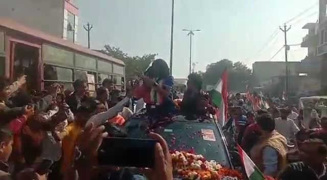 बांगरमऊ नगर आगमन पर क्रिकेटर अर्चना देवी के रोड शो में जगह जगह पर नगर वासियों ने किया जोरदार स्वागत।