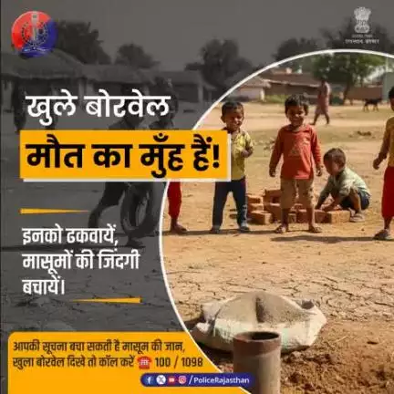 बोरवेल को खुला नहीं छोड़े। खुले बोरवेल बच्चों और जानवरों की जान के लिए खतरा हैं। यदि आपके आस-पास कोई अनुपयोगी बोरवेल है, तो बंद करें, ढकें या प्रशासन को तुरंत सूचित करें।