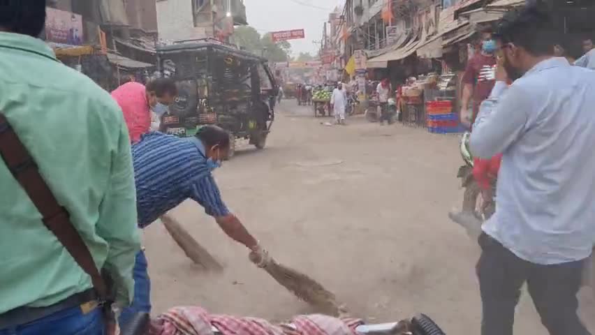 सासाराम: पृथ्वी दिवस पर पुष्कल फाउंडेशन द्वारा आयोजित स्वच्छता जागरुकता सप्ताह के पहले दिन गांधी स्मारक पर सफाई करते कार्यकर्ता
