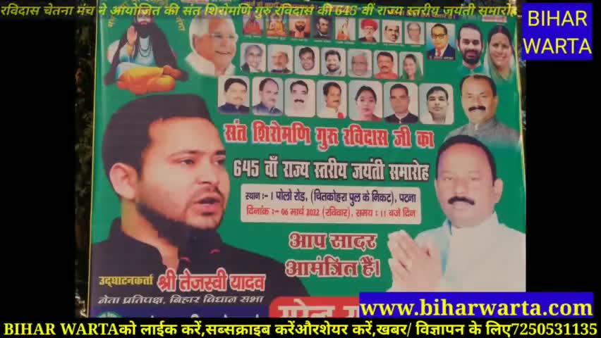 पटना ग्रामीण: तेजस्वी ने रविदास जयंती के बहाने सत्ता पक्ष पर लालू को परेशान करने का लगायाआरोप,शराबबंदी के नाम पर सभी गरीब जेल में बंद.
