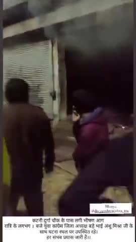 कटनी दुर्गा चौक में लगी भीषण आग रात्रि के लगभग 1:00 यु.कां जिलाध्यक्ष बड़ेभाई अंशु मिश्रा के साथ घटनास्थल पर उपस्थित रहे