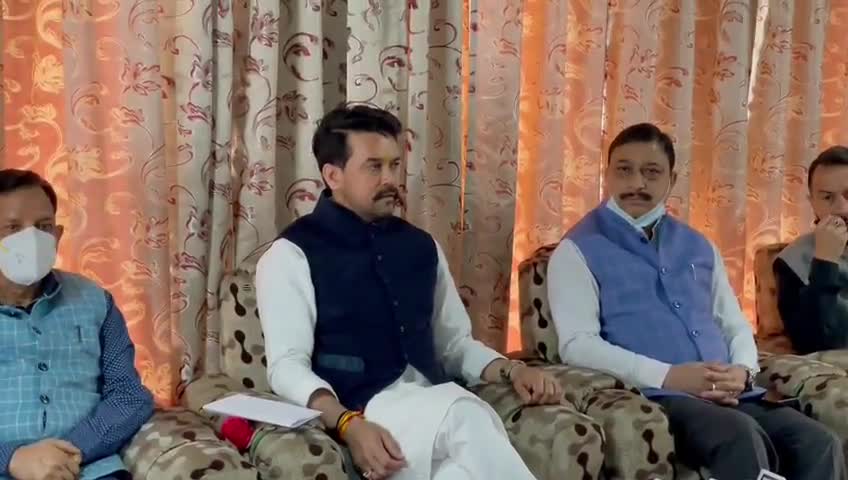 हमीरपुर: केंद्रीय वित्त राज्य मंत्री श्री अनुराग ठाकुर नगर निगम चुनाव धर्मशाला में प्रेस वार्ता को संबोधित करते हुए
