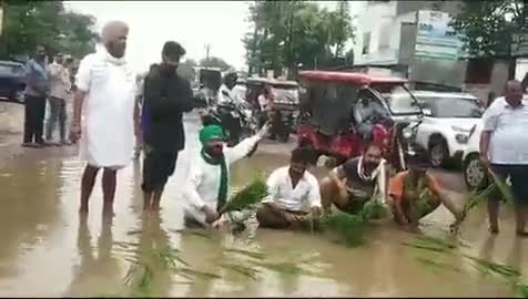 सीतापुर: सीतापुर के #नैपालापुर रोड पर #किसान नेता पिंदर सिंह सिद्धू ने सड़क पर ही #धान लगाया *आपको बताते चले कु