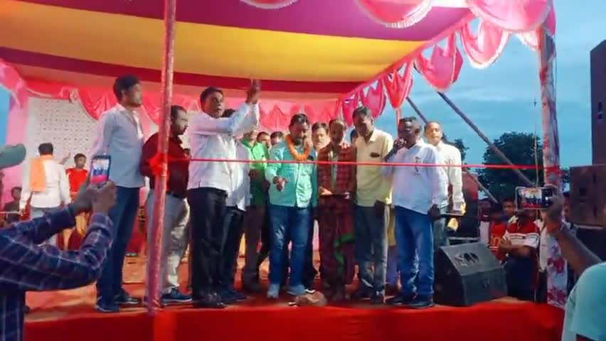 आदित्यपुर गम्हरिया: सार्वजनिक दुर्गा पूजा कमेटी चमारू पंचायत महानवमी में कार्यक्रम का उद्घाटन करते हुए जिला परिषद चेयरमैन सोना राम बोदरा