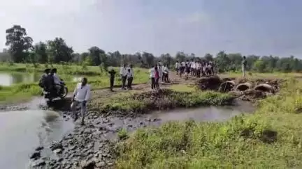 देवास जिले के खातेगांव तहसील के अन्तर्गत आने वाले दीपगांव कुसमानिया मार्ग पर हरणगांव के पास स्थित चदपुरा के स्कूली बच्चे और ग्रामीण इन दिनों काफी परेशान है। टूटी पुलिया और कच्चे मार्ग के कारण उन्हें अपनी जान जोखिम में डालकर नाला को पार करना पड़ रहा है बुधवार शाम 4:00 ग्रामीणों ने नायब तहसीलदार कमल राय सुनहरे को आवेदन देकर समस्या का निराकरण करवाने की मांग
