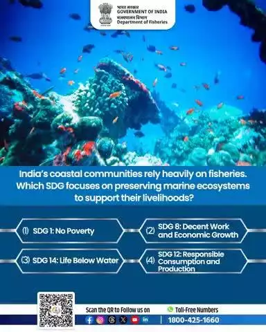From coastal livelihoods to marine biodiversity, protecting our oceans is key! Can you guess which SDG supports India’s fisheries and coastal communities? #SustainableDevelopment