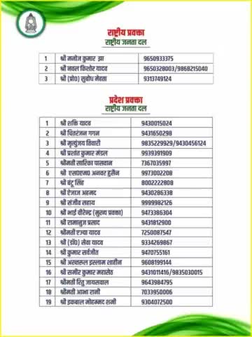R.J.D - राष्ट्रीय जनता दल के नवनियुक्त सभी राष्ट्रीय एवं बिहार प्रदेश प्रवक्ताओं को हार्दिक बधाई एवं शुभकामनाएं । 💐