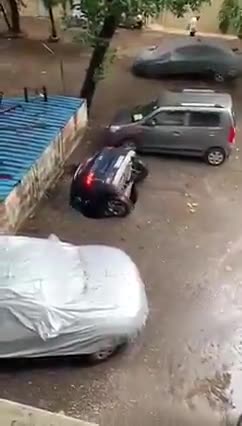 #वायरल_वीडियो :-देखते ही देखते कार गायब हो गई । ये जादू है या बदइंतजामी ❓ #viral #mumbai #india #barish#बारिश #today
