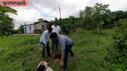 कृष्ण जन्माष्टमी के पावन अवसर पर युवाओं ने "श्रीराम जानकी वाटिका करौंदी" में किया फलदार आम के पौधों का रोपण ।।