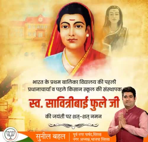 भारत के प्रथम बालिका विद्यालय की पहली प्रधानाचार्य व पहले किसान स्कूल की संस्थापक स्व.सावित्रीबाई फुले जी की जयंती पर शत-शत नमन 🙏