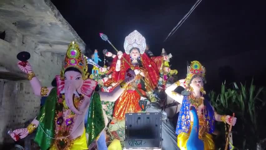 हलसी: शनिवार को कैंदी में स्थापित चैती मां दुर्गा की प्रतिमा का किया गया विसर्जन