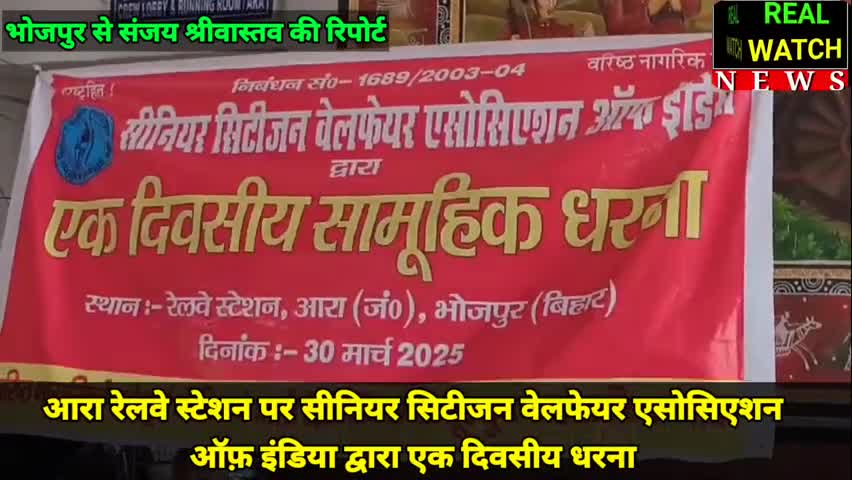 आरा रेलवे स्टेशन पर सीनियर सिटीजन वेलफेयर एसोसिएशन ऑफ़ इंडिया द्वारा एक दिवसीय धरना