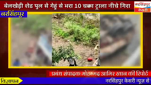 नरसिंहपुर: Narsinghpur : गोटेगांव के बेलखेड़ी शेड पुल से गेहूं से भरा 10 चका ट्राला नीचे गिरा