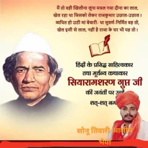 “मैं तो वही खिलौना लूंगा मचल गया दीना का लाल, खेल रहा था जिसको लेकर राजकुमार उछाल-उछाल! व्यथित हो उठी मां बेचारी- था सुवर्ण-निर्मित वह तो, ‘खेल इसी से लाल, नहीं है राजा के घर भी यह तो!” हिंदी के प्रसिद्ध साहित्यकार तथा मूर्धन्य कथाकार सिया