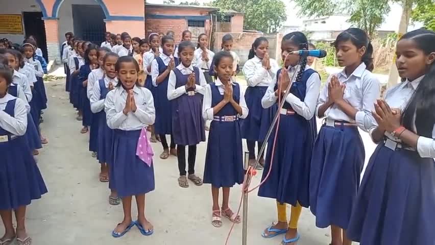 गोपालगंज: राजकीय उत्क्रमित मध्य विद्यालय नेहरूआ कला में प्रार्थना करते बच्चे