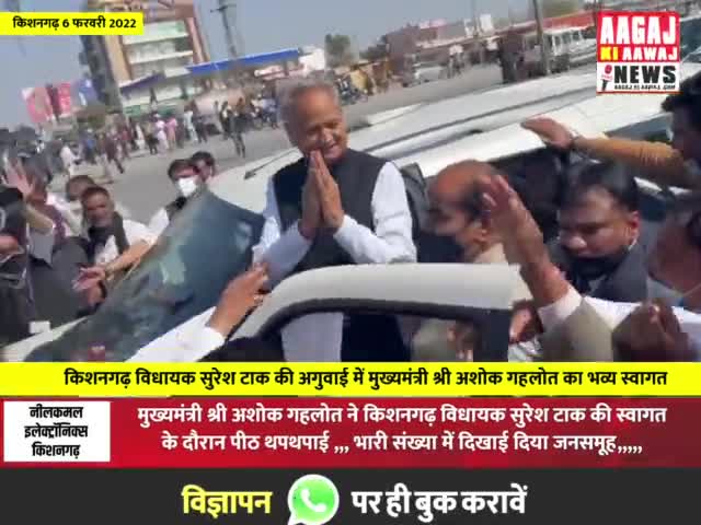 विधायक सुरेश टाक की पीठ थपथपाते हुए मुख्यमंत्री गहलोत ने किशनगढ़ के सैकड़ों समर्थको का अभिवादन किया।