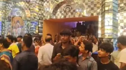 ক্যানিং ১: ক্যানিং এর মিঠাখালি পাড়া সার্বজনীন দুর্গোৎসব কমিটির মণ্ডপে নবমীর রাতে মানুষের ঢল