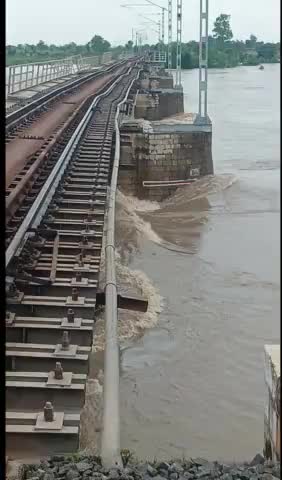 पार्वती नदी पर कुंभराज के पास बना रेलवे पुल क्षतिग्रस्त होने की वजह से ट्रेनों का रूट बदल दीया गया है।।#