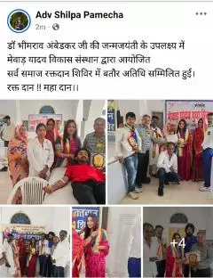 डॉ भीमराव अंबेडकर जी की जन्मजयंती के उपलक्ष्य में मेवाड़ यादव विकास संस्थान द्वारा आयोजित सर्व समाज रक्तदान शिविर में बतौर अतिथि सम्मिलित हुई। रक्त दान !! महा दान।।
