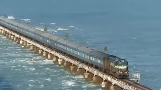 समुद्र के बीच में से गुजर रही ट्रेन कहा जा रही लहरों के बीच में ट्रेन