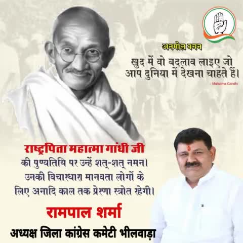 विश्व को सत्य व अहिंसा का पाठ पढ़ानेवाले, सादगी की प्रतिमूर्ति, राष्ट्रपिता महात्मा गांधी जी की पुण्यतिथि पर विनम्र श्रद्धांजलि।