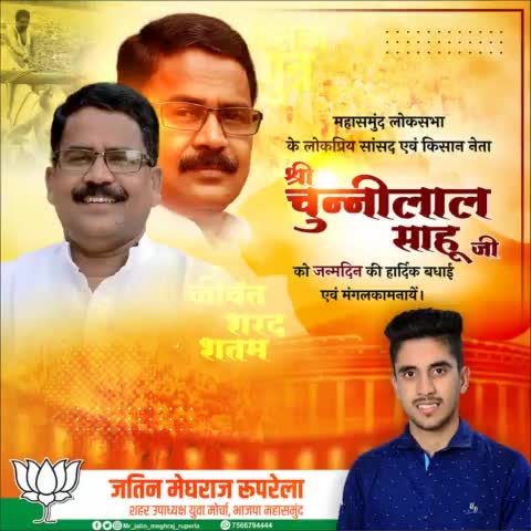 महासमुंद लोकसभा के लोकप्रिय सांसद,छत्तीसगढ़िया किसान माटी पुत्र मा.चुन्नीलाल साहू जी को जन्मदिन की हार्दिक शुभकामनाएं 💐