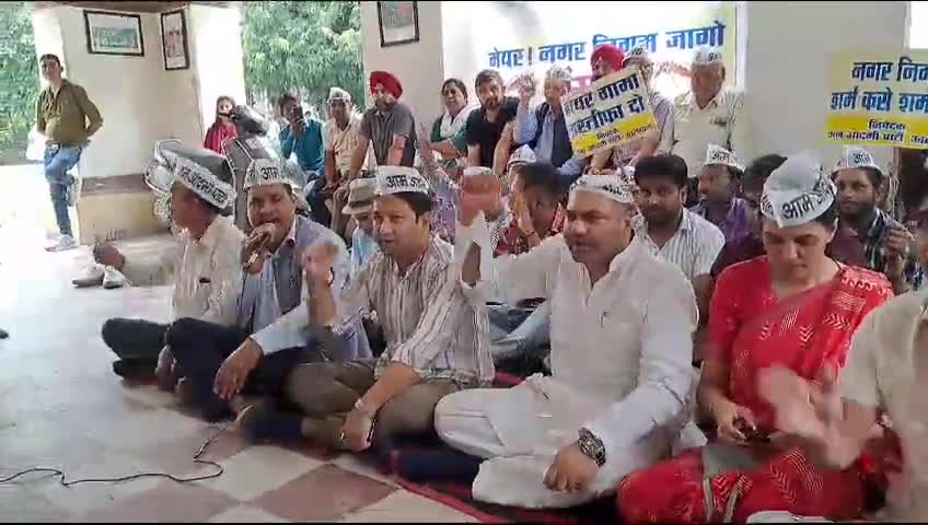 डेंगू और टाइफाइड के बढ़ते मामलों को लेकर नगर निगम के स्वस्थ रवैया के खिलाफ आम आदमी पार्टी का नगर निगम में हल्ला बोल