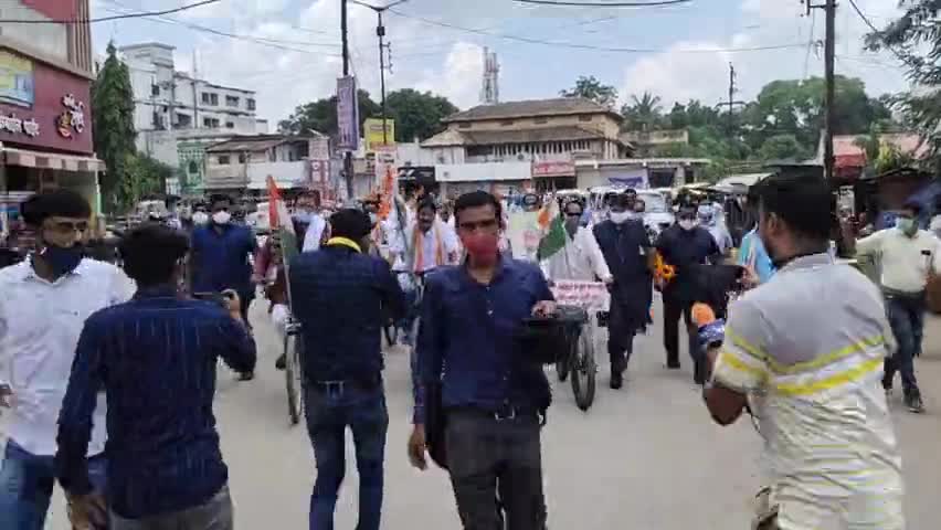 केंद्र सरकार के द्वारा लगातार बढ़ाएं जा रहे महंगाई के विरोध में जिला कांग्रेस ने किया साइकिल रैली