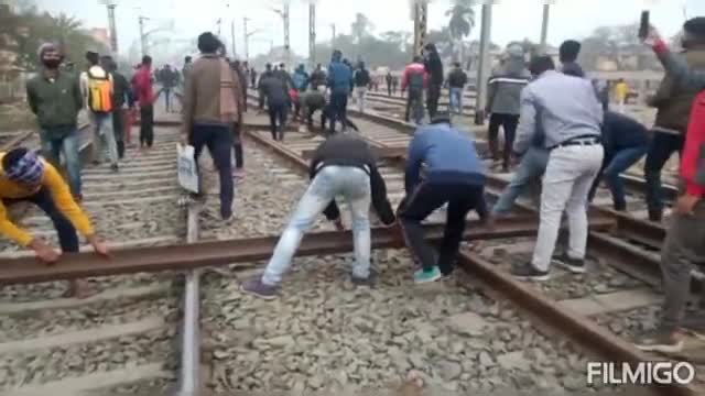 छात्रों का उग्र आंदोलन रेल की पटरी उखाड़ कर ट्रेन को किया आग के हवाले