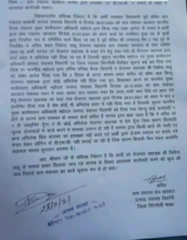 चितरंगी: खरखटा ग्राम पंचायत सरपंच द्वारा हस्ताक्षर एवं डीएससी न लगाने के संबंध में परेशान सचिव ने जिला सीईओ से की शिकायत