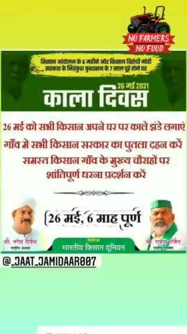 काला दिन 26 मई काले झंडे फहराया अपने घर पर गाड़ी आदी पर किसानों के समान मे