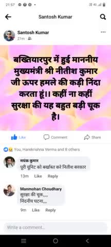 बख्तियारपुर में हुई माननीय मुख्यमंत्री श्री नीतीश कुमार जी ऊपर हमले की कड़ी निंदा करता हूं।। कहीं ना कहीं सुरक्षा की यह बहुत बड़ी चूक है।