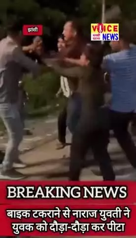 बाइक टकराने से नाराज युवती ने युवक को दौड़ा-दौड़ा कर पीटा #news #viral #crime