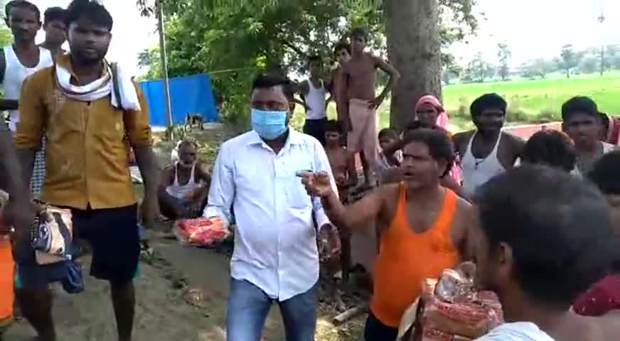 मकेर: फुलवरिया पंचायत में बाढ़ पीड़ितों के बीच ब्रेड बिस्किट पानी वितरण किये पंचायत समिति सदस्य प्रतनिधि अजय कुमार सोनी।
