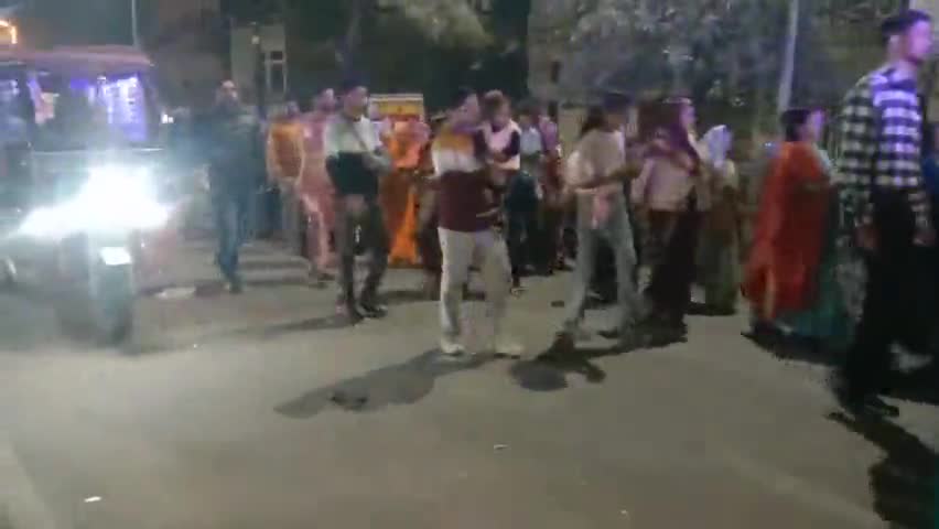 मंगलपुर थाना क्षेत्र के कस्बा झींझक के ओमनगर से ब्रहस्पतिवार शाम 8 बजे विशाल शोभायात्रा निकाली गयीं शुक्रवार को देर शाम माँ काली का भव्य जागरण होगा... #Jhinjhak
