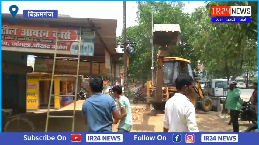 बिक्रमगंज: रोड के किनारे लगे अतिक्रमण को हटाया गया,जनता ने प्रशासन पर लगाया आरोप। @ir24news र #bikramganj