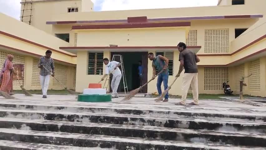 NYK कैमूर द्वारा नुआव प्रखंड के अकोल्ही पंचायत भवन पर स्वच्छता ही सेवा अंतर्गत एक घंटा श्रमदान किया गया।