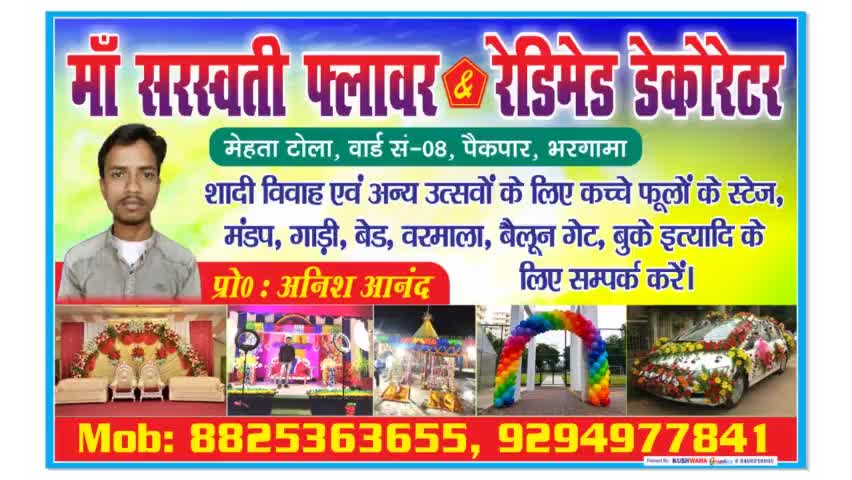 मां सरस्वती फ्लावर डेकोरेशन पैकपार संपर्क 8825363655