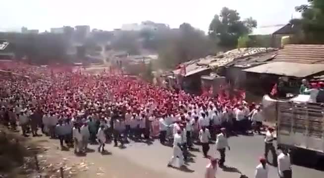 महाराष्ट्र के नासिक से मुंबई कूच करता किसानों का जत्था। हजारों की तादाद में किसान लाल झंडे हाथों में लिए