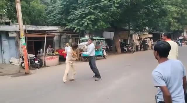 कानपुर: #Hamirpur - बीच सड़क दो शराबी भाई आपस में भिड़े सदर कोतवाली इलाके के जिला पंचायत ऑफिस के मेन गेट का मामला #fight